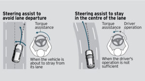 assist the driver by controlling the steering automatically to stay on track if vehicle is detected to be…